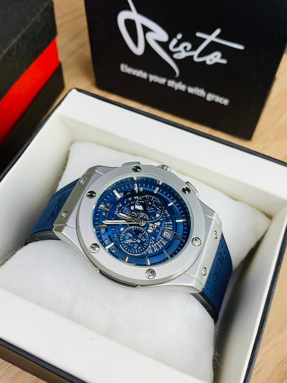 Hublot Skeleton Leather Straps - Premium Watch - Full Blue