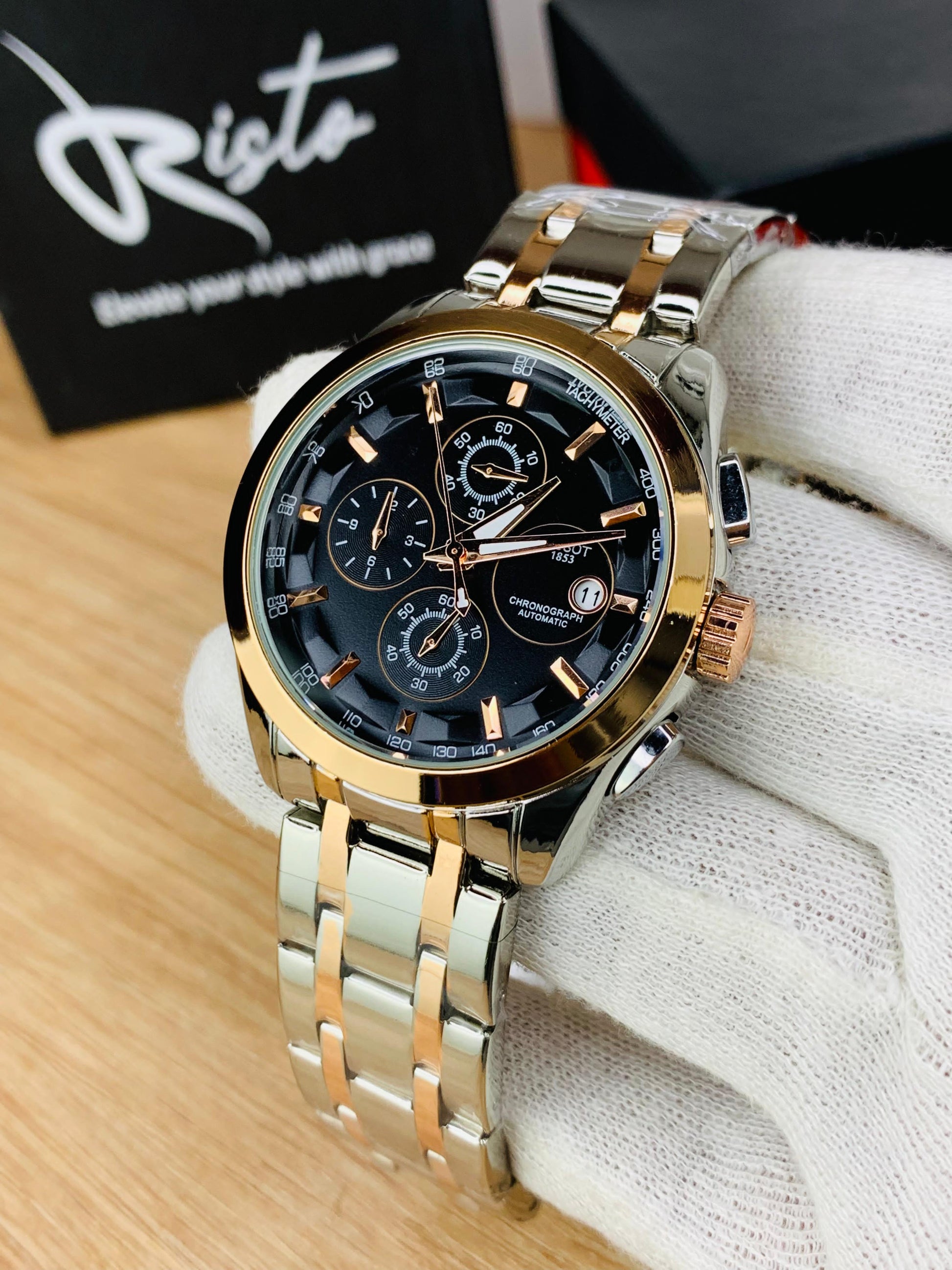 Luxury Chronograph Watch for Men | Stainless Steel - Rose Gold Black